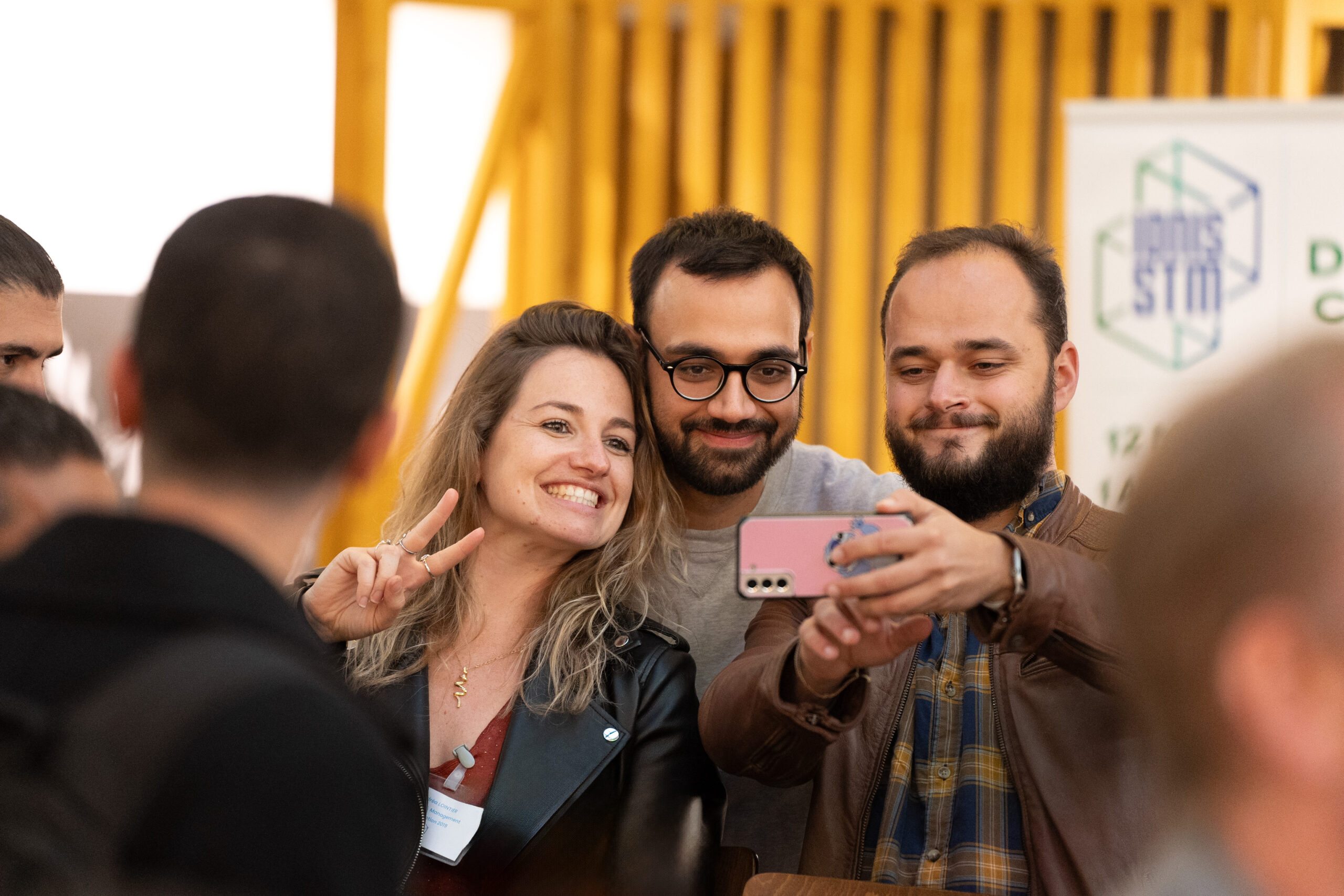 Alumni Ionis-STM échangeant lors d’un événement professionnel dans un environnement de networking